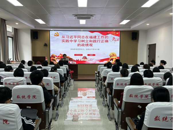 为深入学习贯彻习近平总书记关于树立和践行正确政绩观的重要论述,扎实开展学习教育工作,4月24日下午,数统学院在院208报告厅举行树立和践行正确政绩观学习教育读书班暨党委理论学习中心组学习,特邀福建省委党校林建华教授作专题辅导讲座。讲座由学院党委书记郑世珠主持,学院党委理论学习中心组成员和部分师生党员参加。
