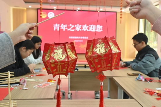 活动现场暖意融融,制作材料整齐摆放,大家兴致盎然地挑选素材、精心构思。裁剪、折叠、粘贴、装饰,同学们相互交流技巧、分享创意,原本普通的纸张、竹架,在一双双巧手下逐渐变成造型别致、寓意美好的灯笼。