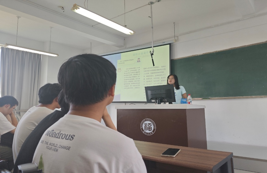 为深入贯彻落实党的二十大和二十届二中、三中全会精神,认真学习贯彻习近平总书记在福建考察时的重要讲话精神,落实省委人才工作领导小组会议部署要求,福建省开展了“扬帆计划”,旨在通过提供优质实习岗位,帮助大学生提升就业能力、明确职业方向。为让更多学生了解相关内容,引导新生未来的职业发展,数学与统计学院于2025年9月27日下午,在铜盘校区A611教室召开“扬帆计划”实习经验分享会。在会上,“扬帆计划”参与者郭嘉祺同学、张艺同学介绍了她们的实习经历,数学与统计学院2025级本科生参会。