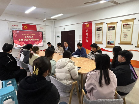 3月3日下午,数统学院在35号楼二楼“一站式”学生社区共享活动室召开寒假学生返乡思想动态调研座谈会。学院党委副书记蓝荣聪、团委副书记沈成平、辅导员许佳琦与本硕博各班代表齐聚一堂,围绕寒假见闻、个人思考与新学期规划等内容深入交流。座谈会由辅导员许佳琦主持。
