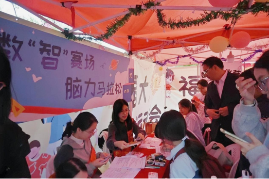 福州大学在校运会期间组织“脑力马拉松”趣味数学游戏区